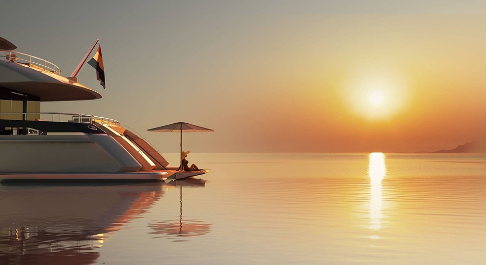 Immerse in the vibrant hues of dawn or dusk while sipping premium beverages on a private yacht Dubai adventure.